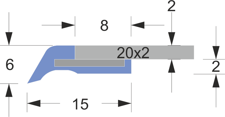 | LN-1 20×2 | 8 mm | 2 mm | 15 mm | 2 mm | 6 mm | 20×2 mm | 500/1000 mm |