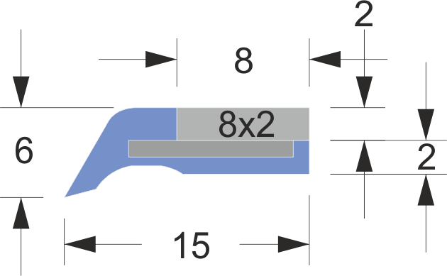 | LN-1 8×2 | 8 mm | 2 mm | 15 mm | 2 mm | 6 mm | 8×2 mm | 500/1000 mm |
