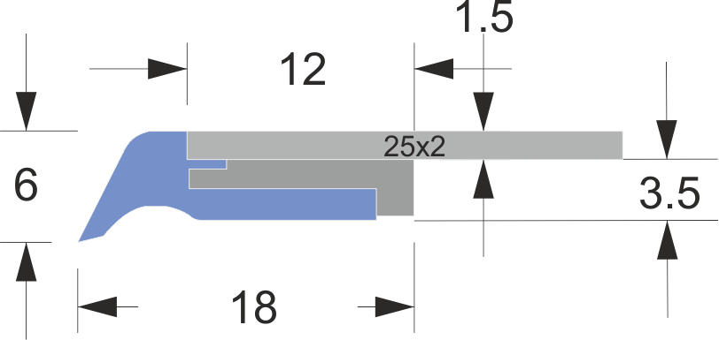 | LN-2 25×2 | – | 12 mm | 1,5 mm | 18 mm | 3,5 mm | 6 mm | 25×2 mm | 500/1000 mm |