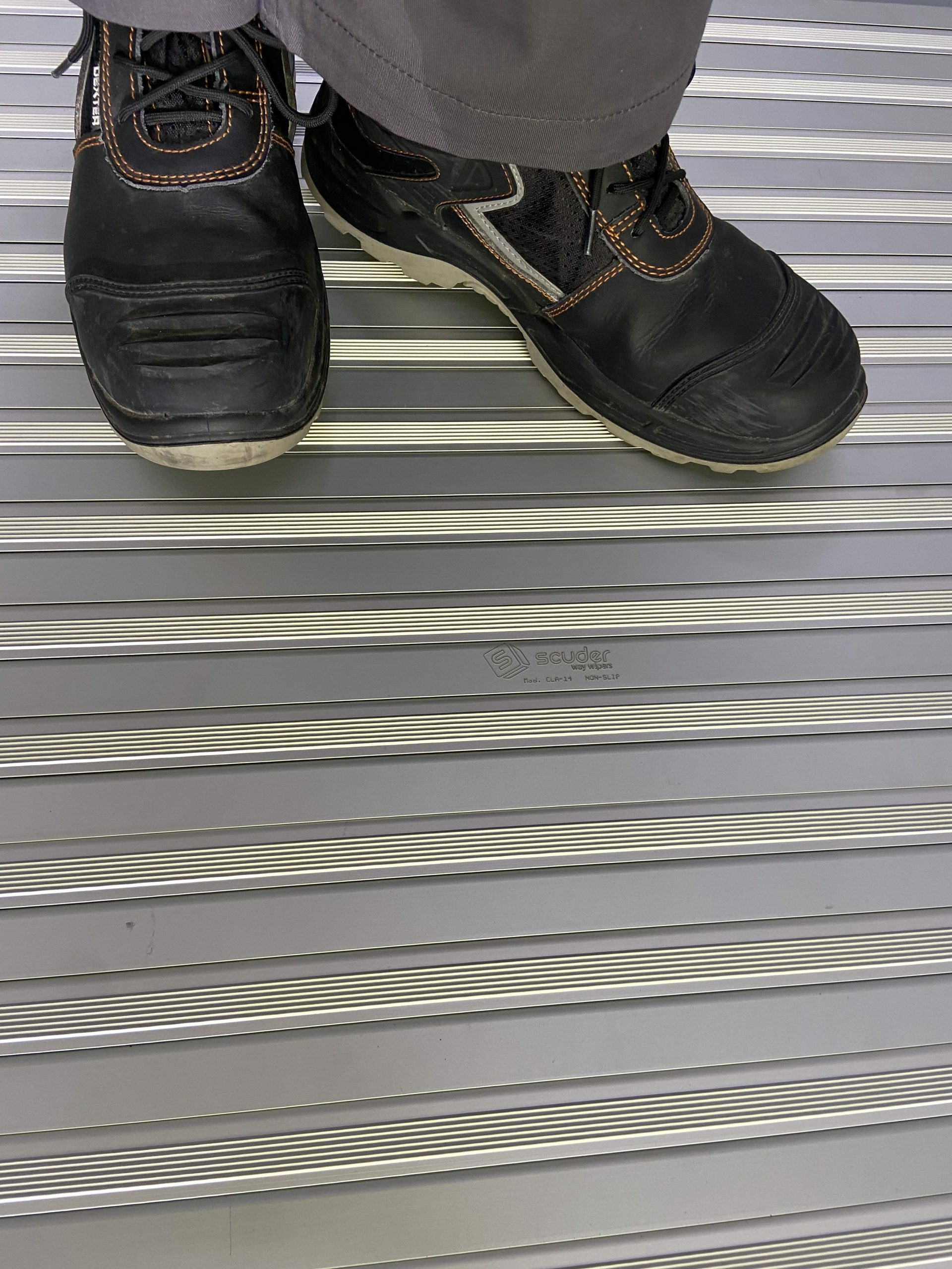 Persiana transitable modelo CLA-14/25 NON-SLIP con superficie estriada. Giro a un solo lado.