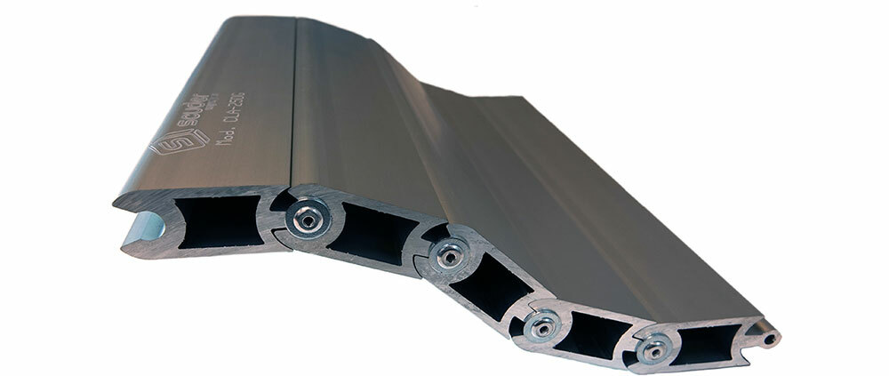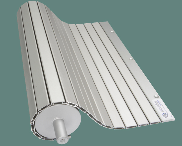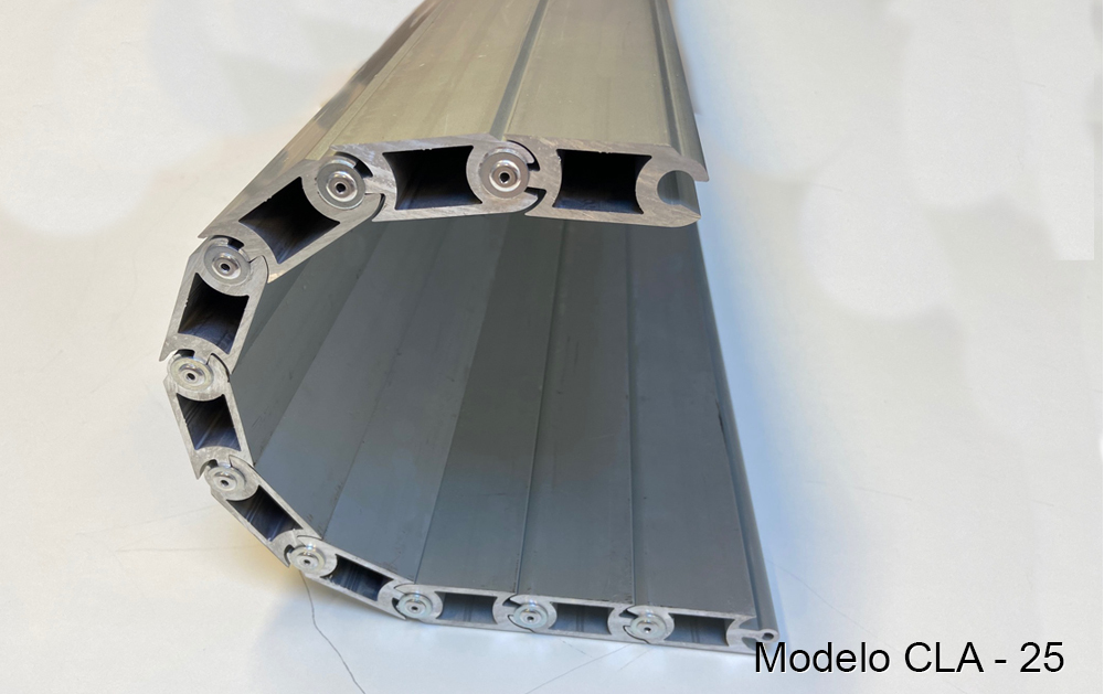 Persiana de protección transitable para maquinaria de aluminio endurecido templado y anodizado especial 0,25 micras, resistente a la corrosión y a temperaturas hasta 300°.